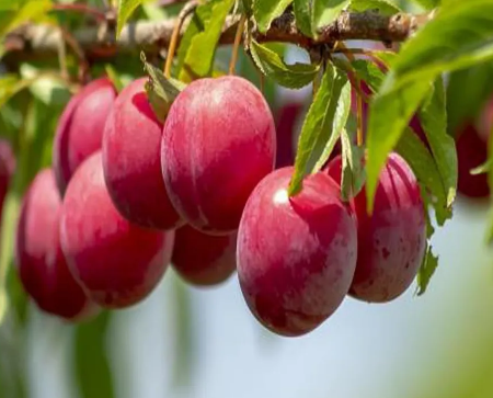 • फल: मध्यम आकार के, गोले/अंडाकार प्लम, चिकनी सतह और रसयुक्त गूदा