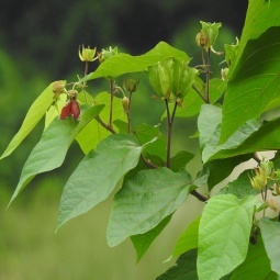 • पत्तियाँ: बड़ी, हृदयाकार, खुरदुरी, गहरे हरे रंग की।