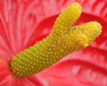 • Flowers: Inflorescence consists of a shiny, colored spathe (commonly red, pink, or white) and a yellow or cream spadix in the center.