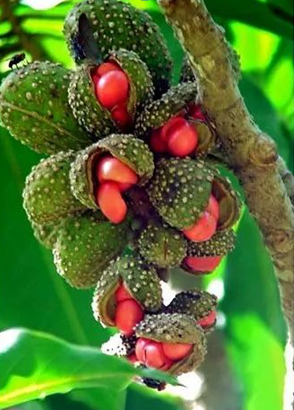 - बीज: लाल-नारंगी रंग की गूदेदार आवरण से ढके हुए