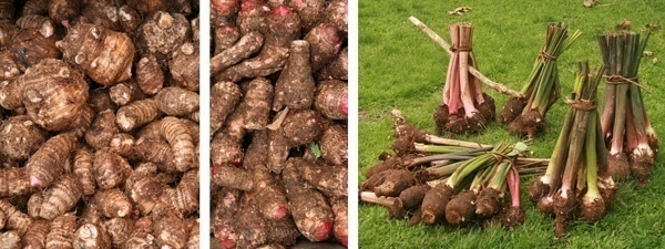 Cooked tubers used internally as digestive and carminative (after proper detoxification).