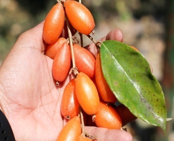 फल: अंडाकार, लाल या नारंगी रंग के, मीठे-खट्टे स्वाद वाले, अंदर एक बीज होता है।