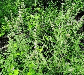 Leaves: Opposite, ovate or oblong, serrated, hairy, aromatic.