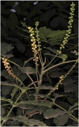 • Flowers: Small, white or cream-colored, in long terminal panicles (polystachya = many spikes).