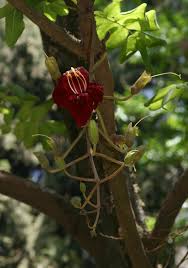 फूल लंबे, मांसल, लाल-गुलाबी, घंटी जैसे